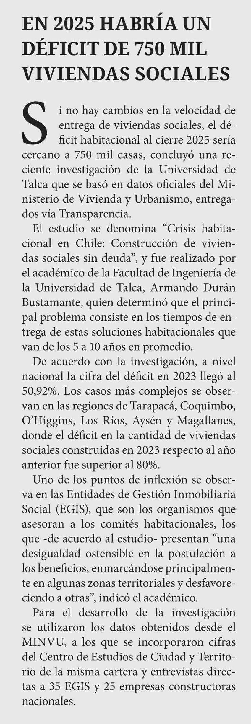 Estudio de la UTalca: En 2025 habría un déficit de 750 mil viviendas sociales en Chile. Se refiere Armando Durán Bustamante, académico de la Facultad de Ingeniería.