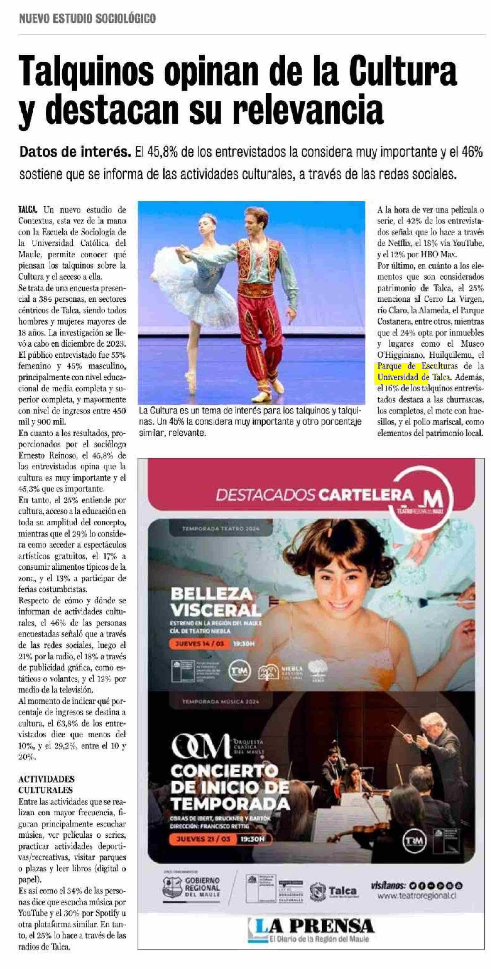 Talquinos opinan de la Cultura y destacan su relevancia. Se menciona la Universidad de Talca.