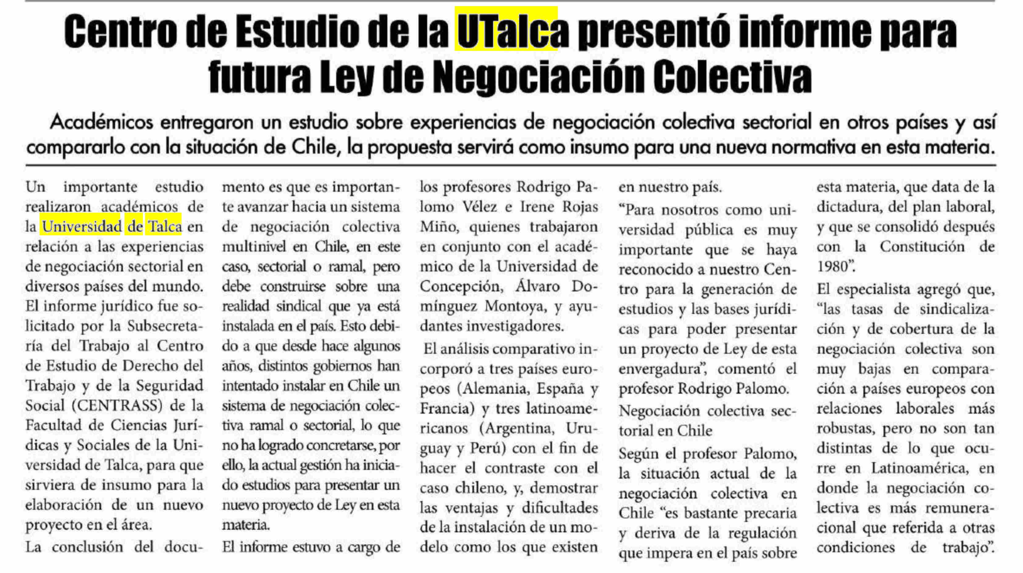 Centro de Estudio de la UTalca presentó informe para futura Ley de Negociación Colectiva. Se refiere Rodrigo Palomo, académico de la Facultad de Ciencias Jurídicas y Sociales.