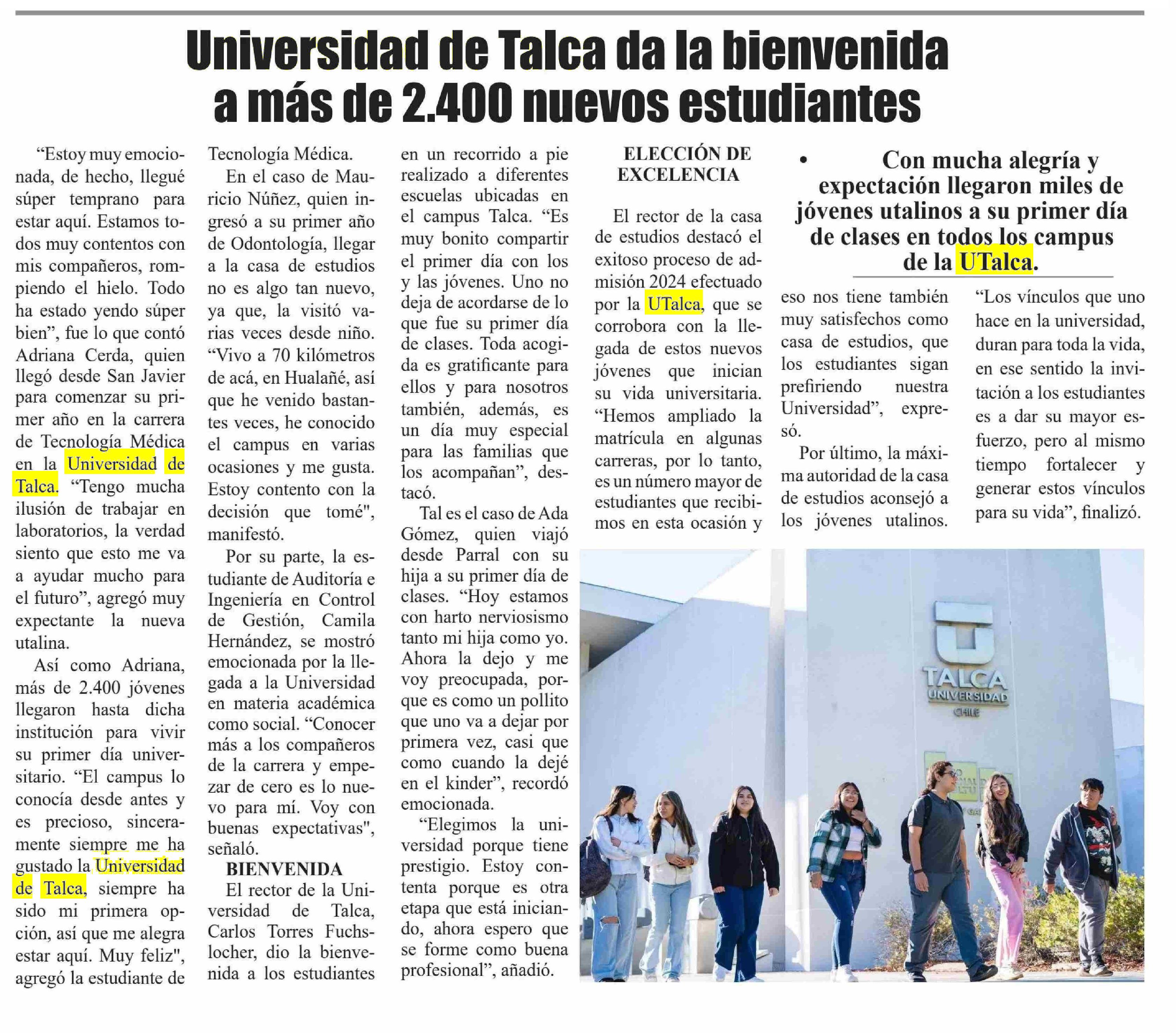 Universidad de Talca da la bienvenida a más de 2.400 nuevos estudiantes. Se refiere el rector Carlos Torres Fuchslocher.