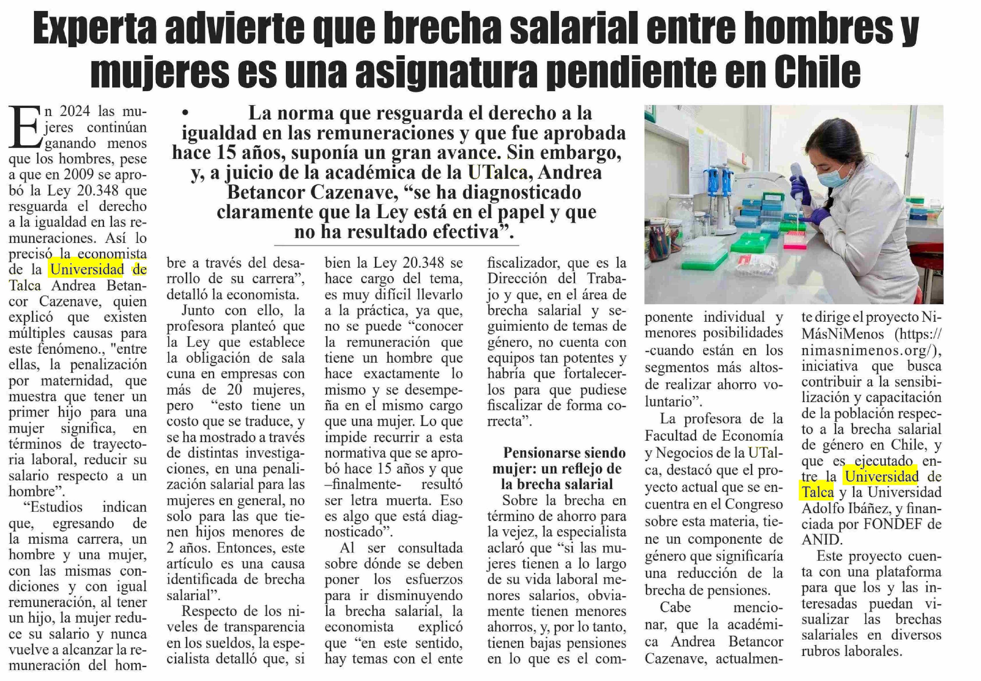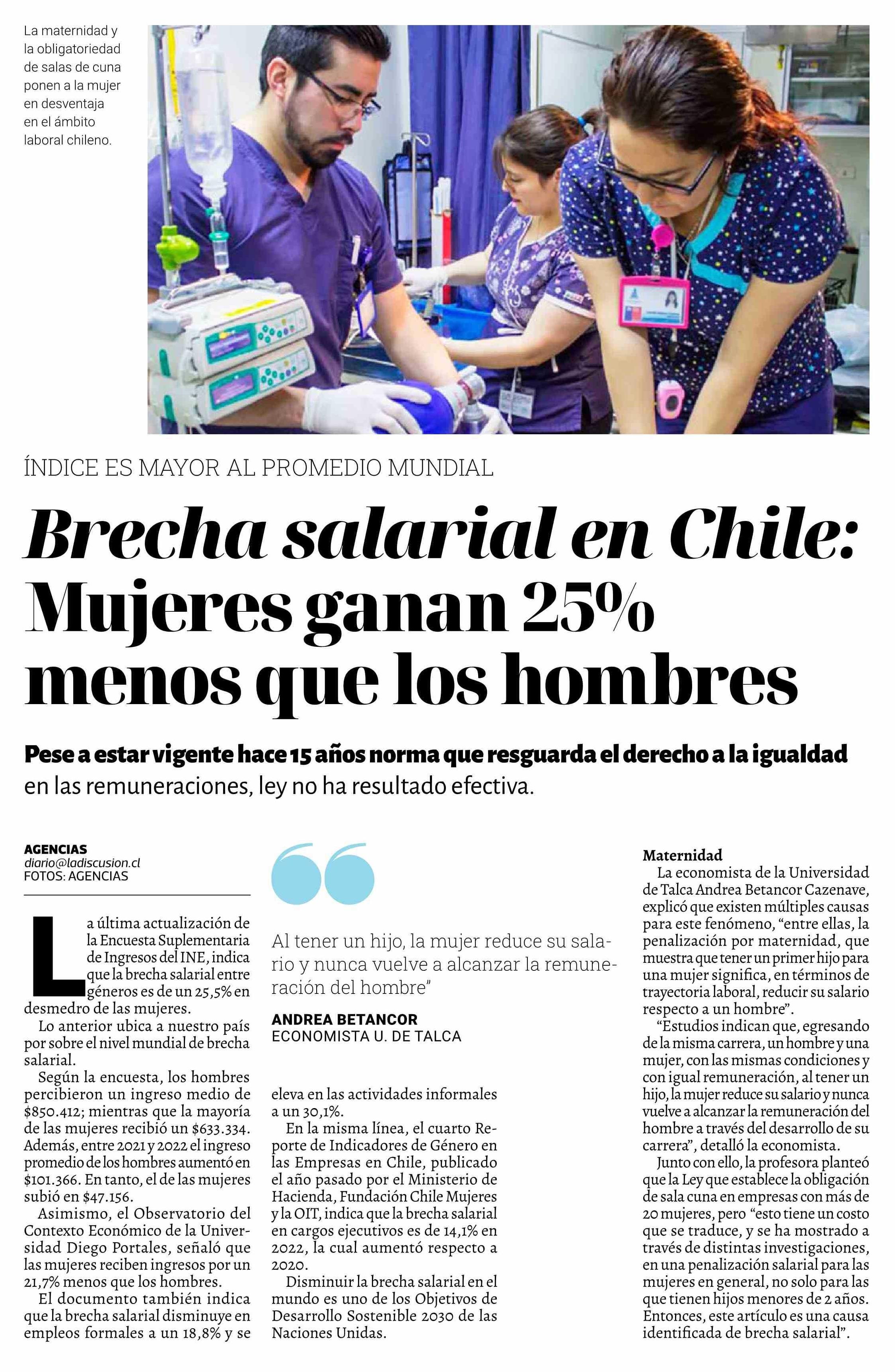 Experta advierte que brecha salarial entre hombres y mujeres es una asignatura pendiente en Chile. Se refiere Andrea Betancort Cazenave, académica de la Facultad de Economía y Negocios.