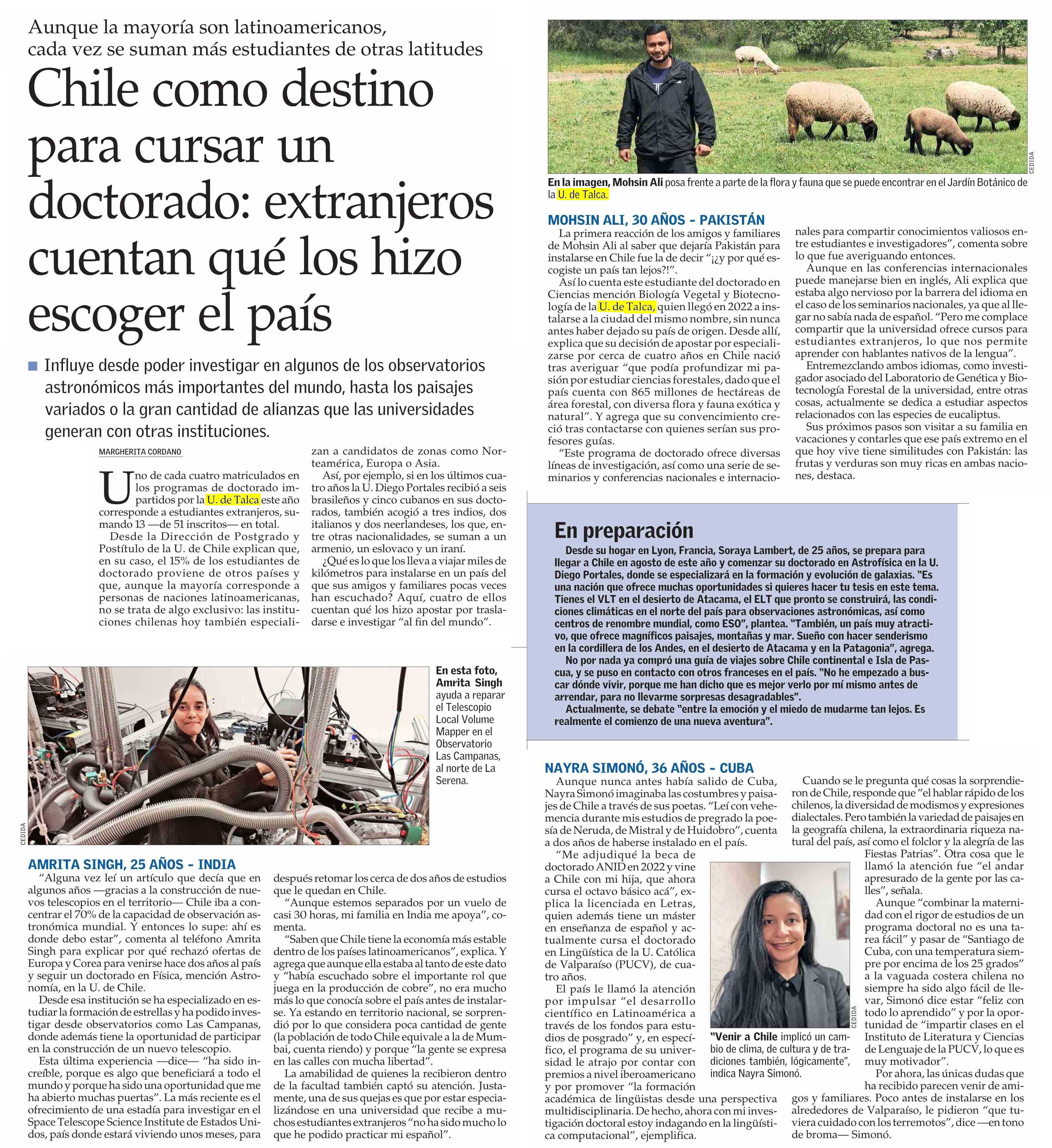 MOHSIN ALI, 30 AÑOS – PAKISTÁN. Se menciona la Universidad de Talca.