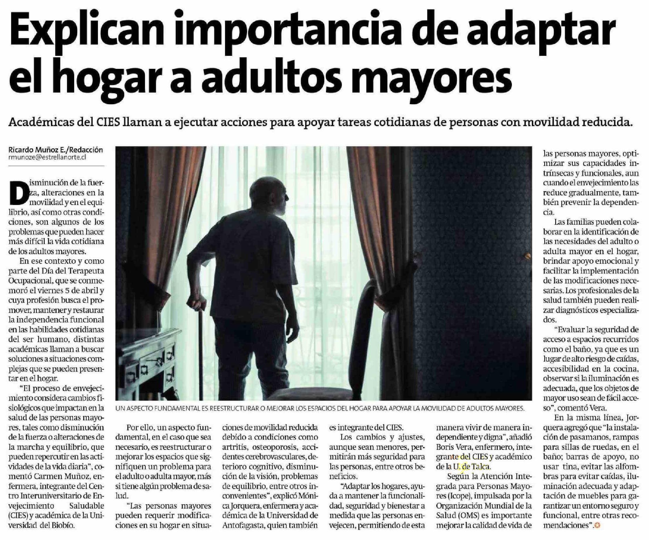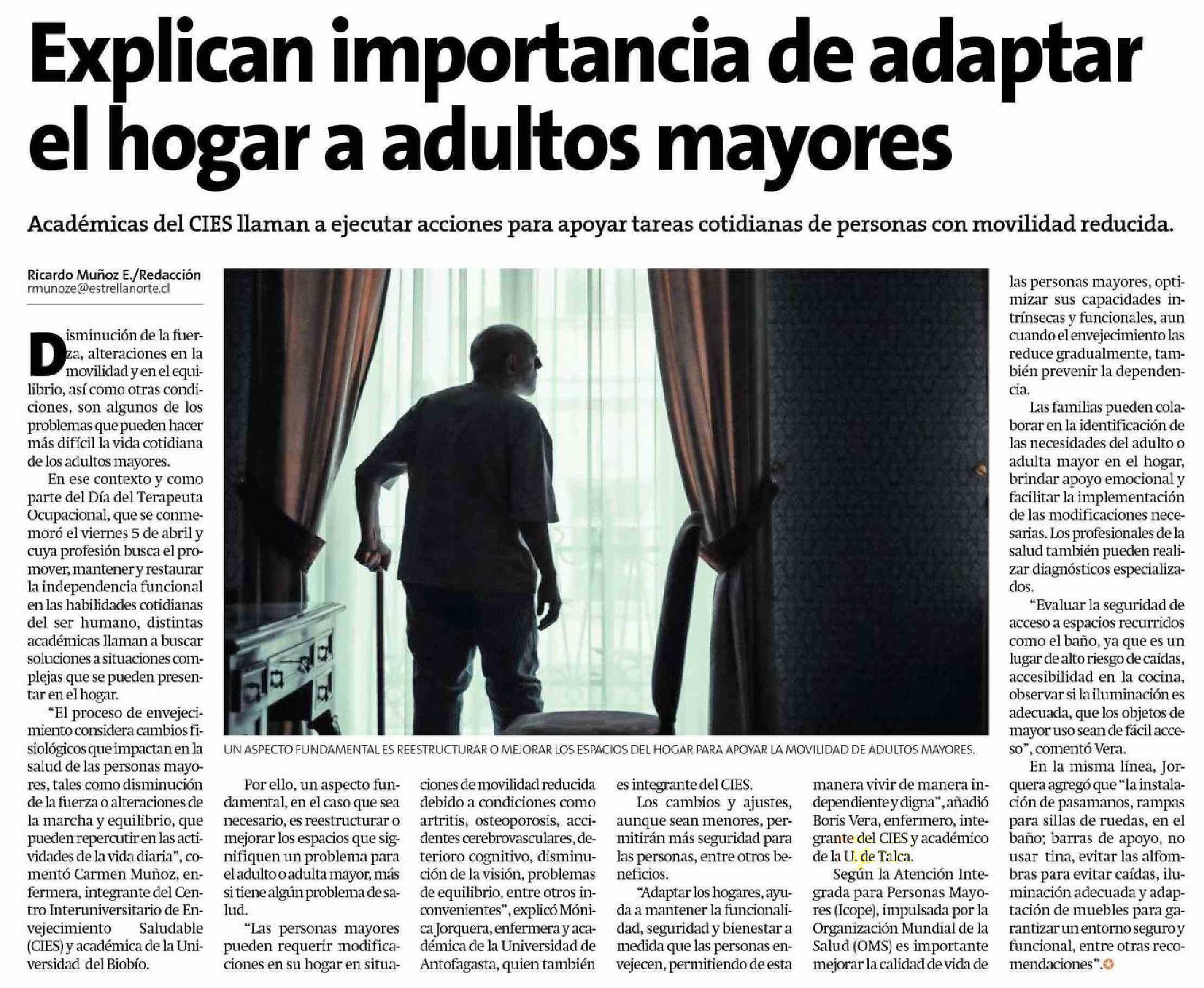 Académicas del CIES explican la importancia de adaptar el hogar a las personas mayores. Se refiere Boris Vera Barrera, académico de la Escuela de Enfermería.