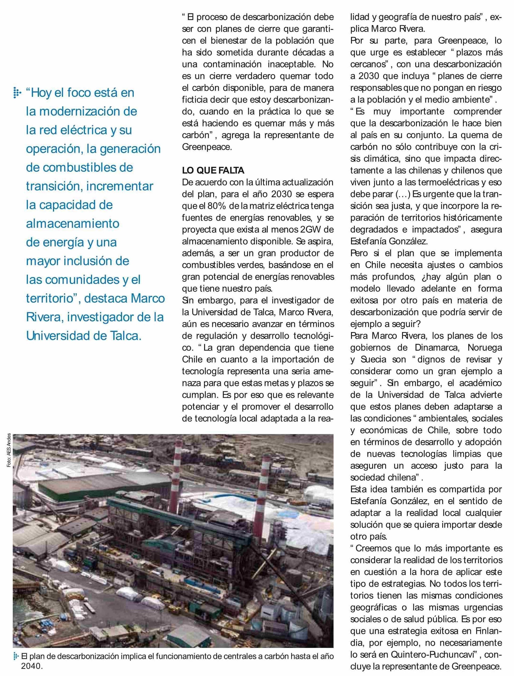 El segundo tiempo del plan de descarbonización. Marco Rivera Abarca, académico de la Facultad de Ingeniería.