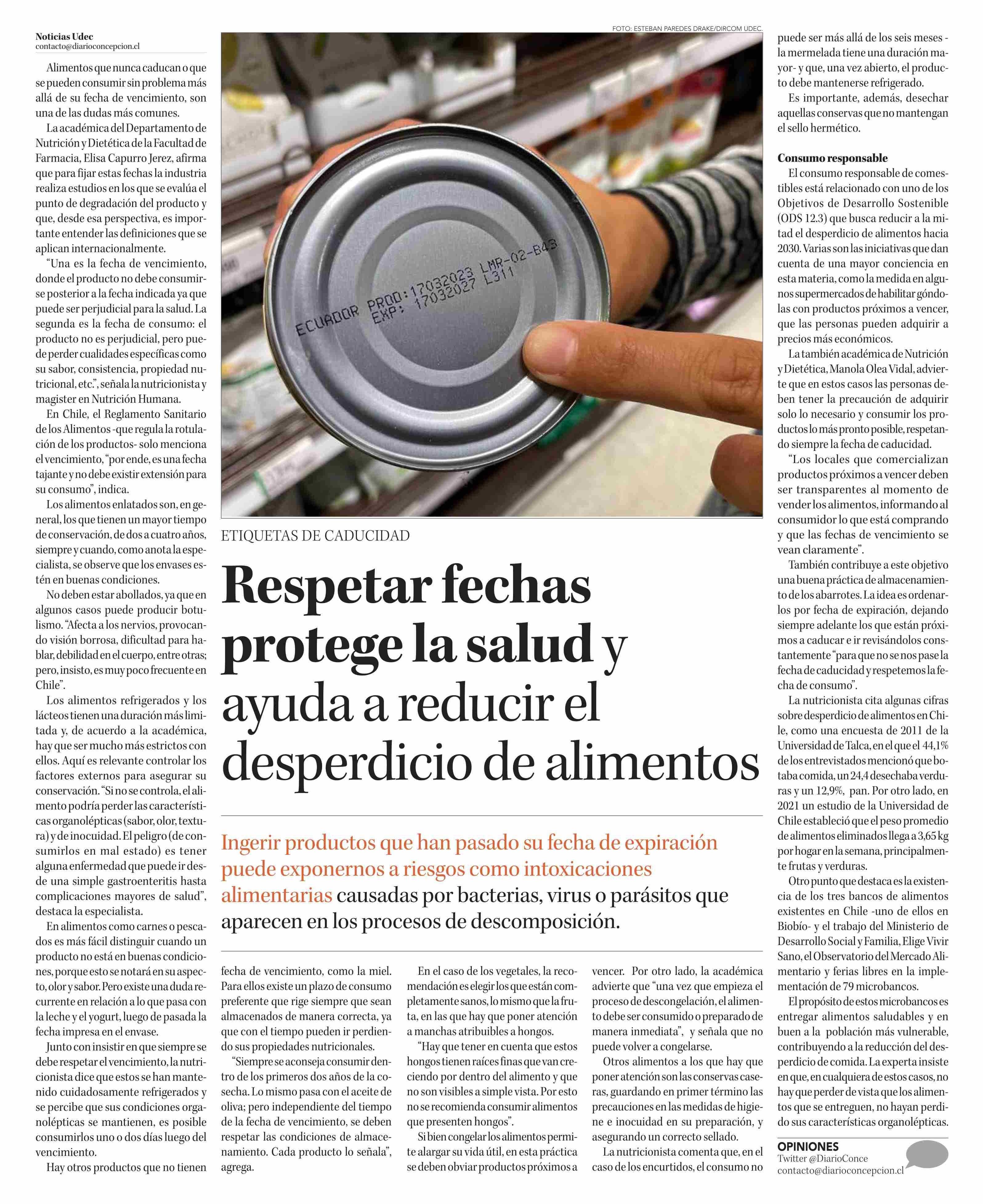 Respetar fechas protege la salud y ayuda a reducir el desperdicio de alimentos. Se menciona la Universidad de Talca.