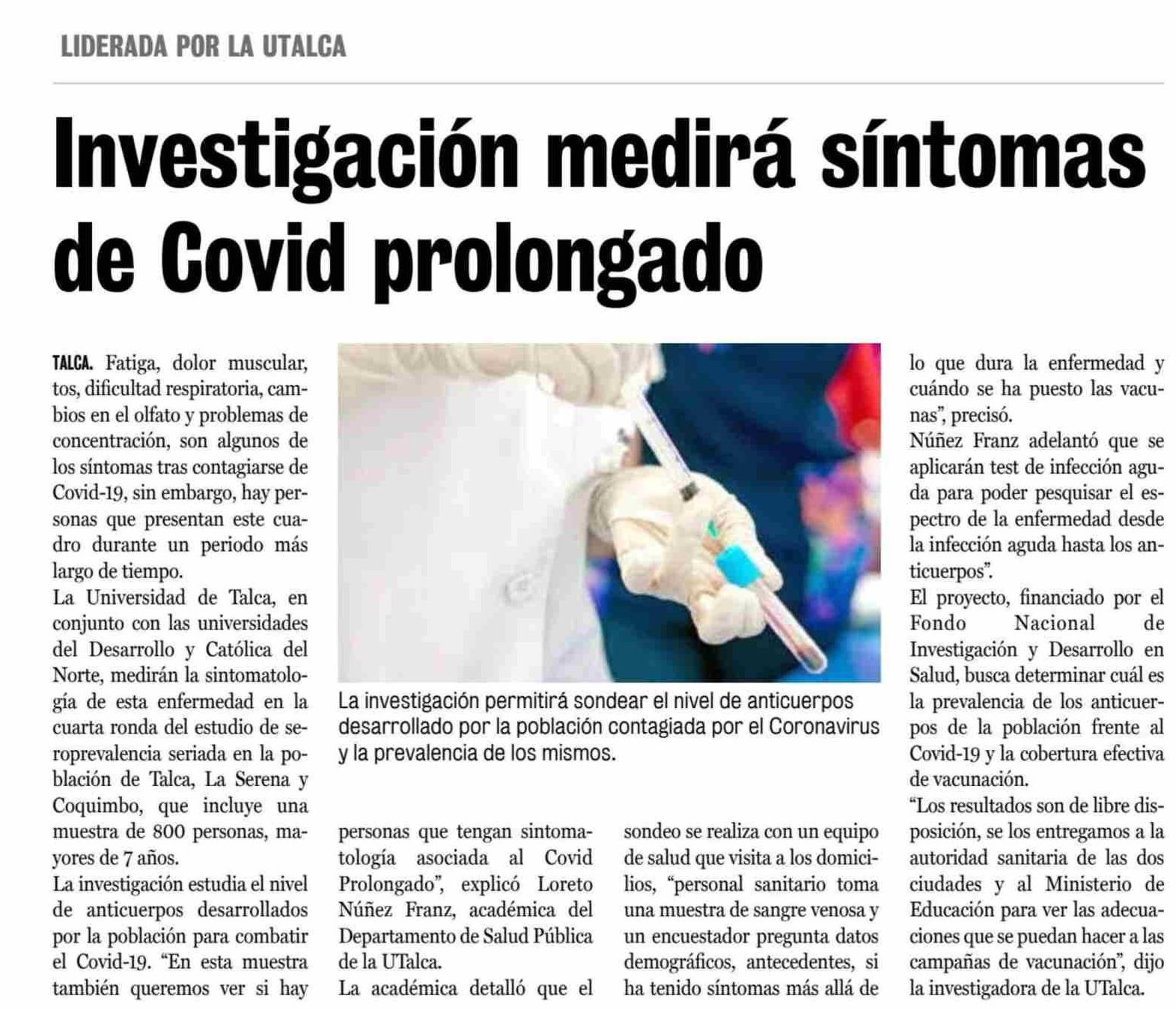 Estudio busca medir sintomatología de Covid prolongado. Se refiere Loreto Núñez Franz, académica del Departamento de Salud Pública.