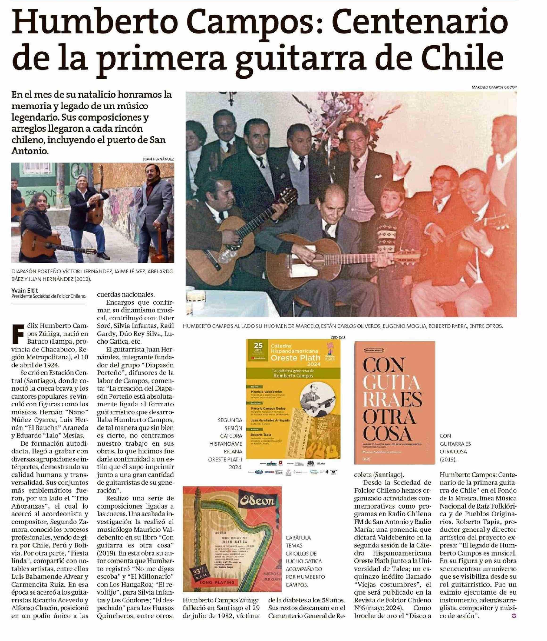Humberto Campos: Centenario de la primera guitarra de Chile. Se menciona la Universidad de Talca.