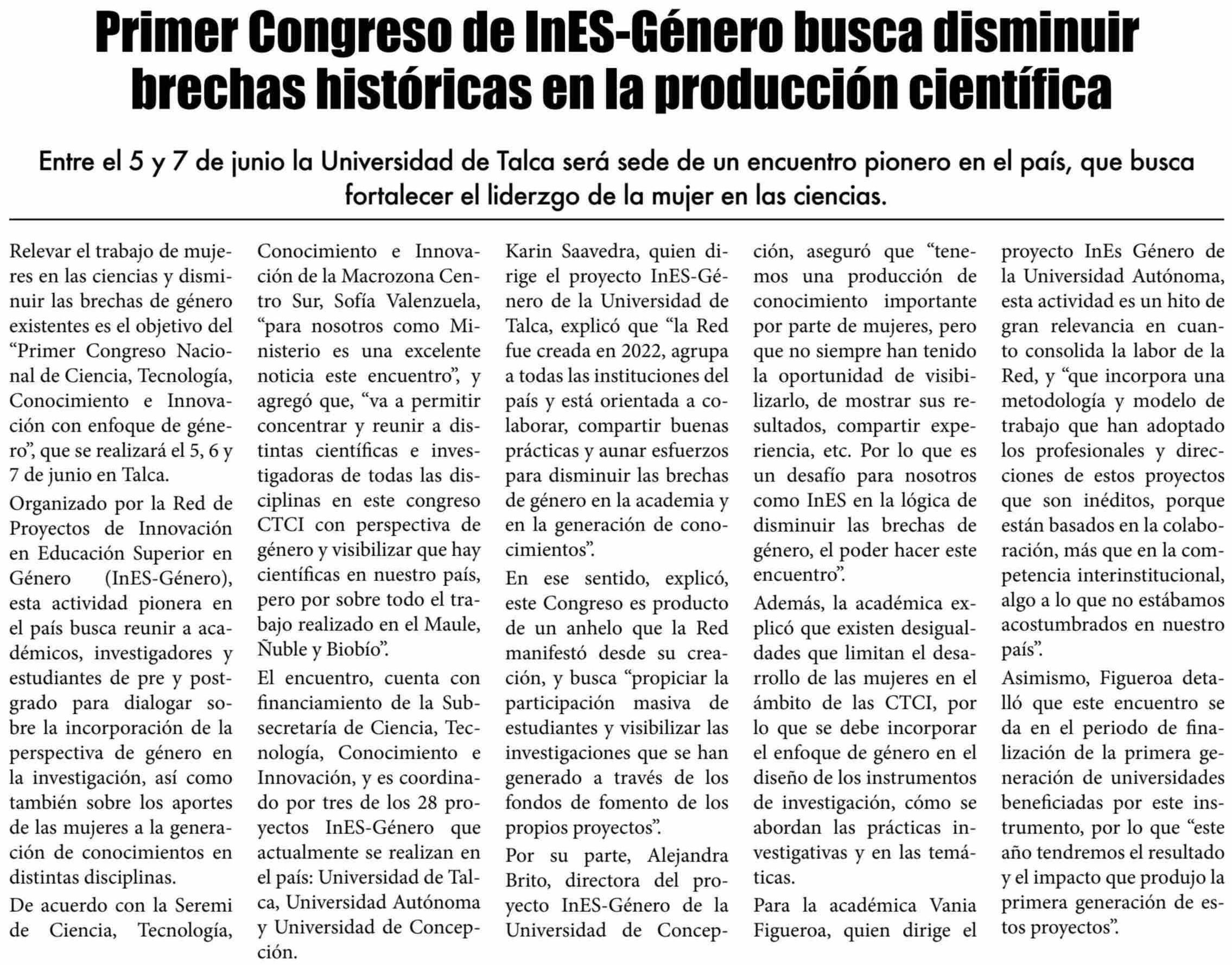 En junio se realizará el Primer Congreso de InES-Género el que busca disminuir brechas históricas en la producción científica. Se refiere Karin Saavedra Redlich, directora general de Vinculación con el Medio.