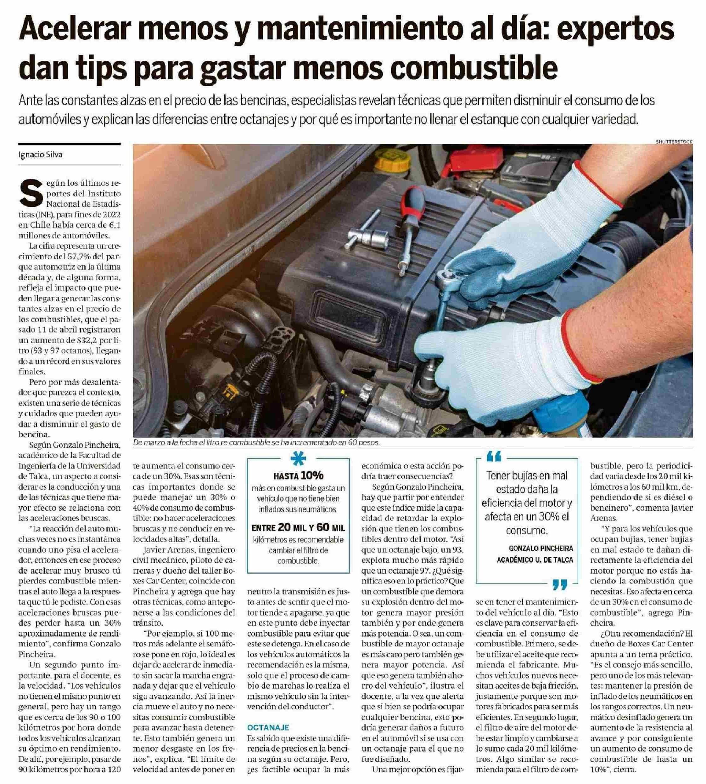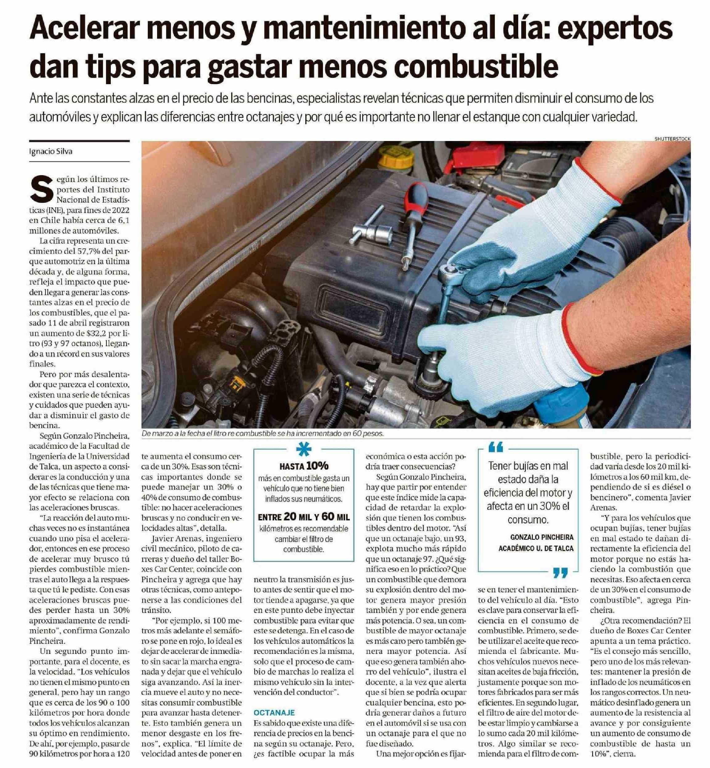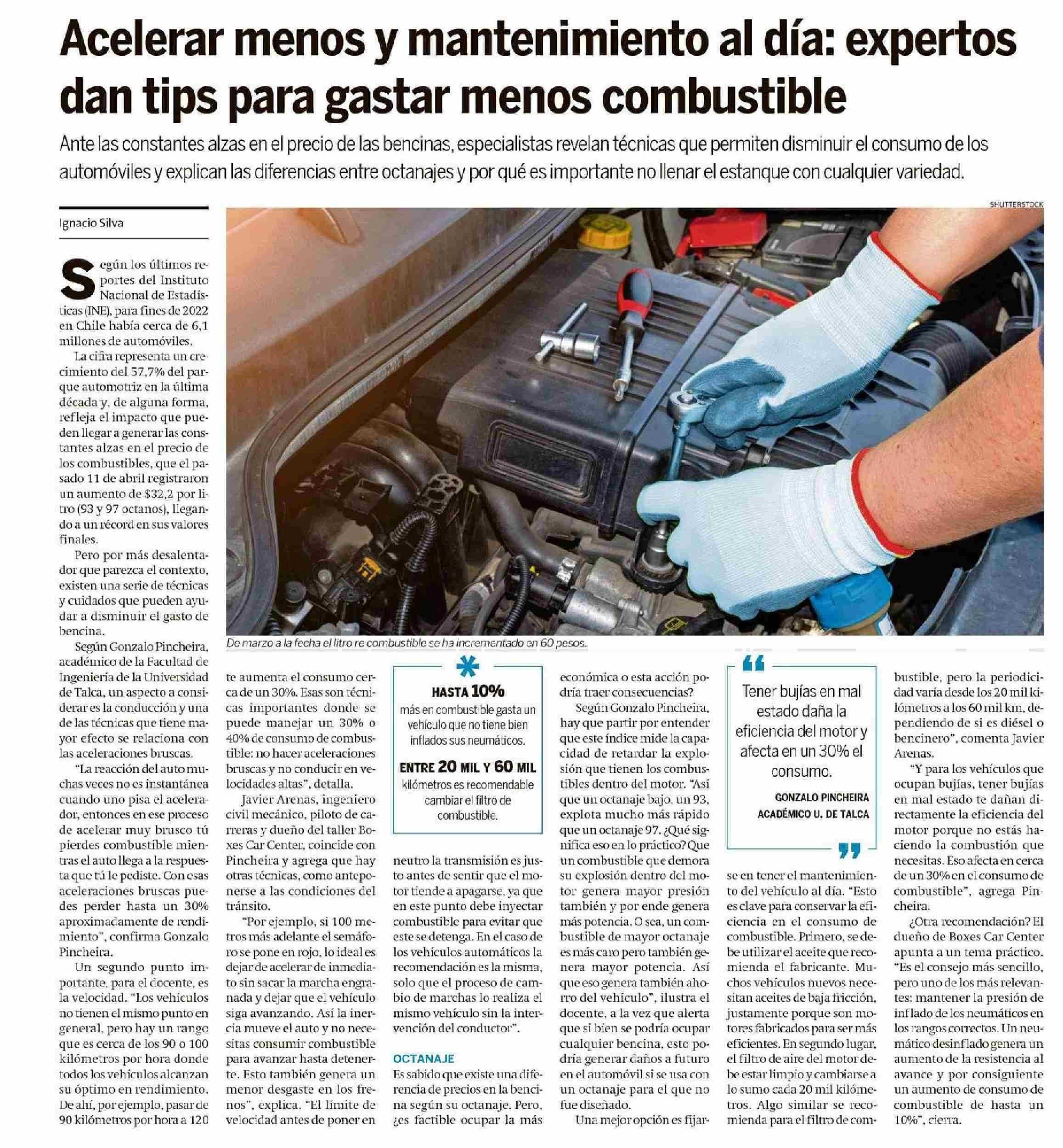 Acelerar menos y mantenimiento al día: expertos dan tips para gastar menos combustible. Se refiere Gonzalo Pincheira, académico de la Facultad de Ingeniería.