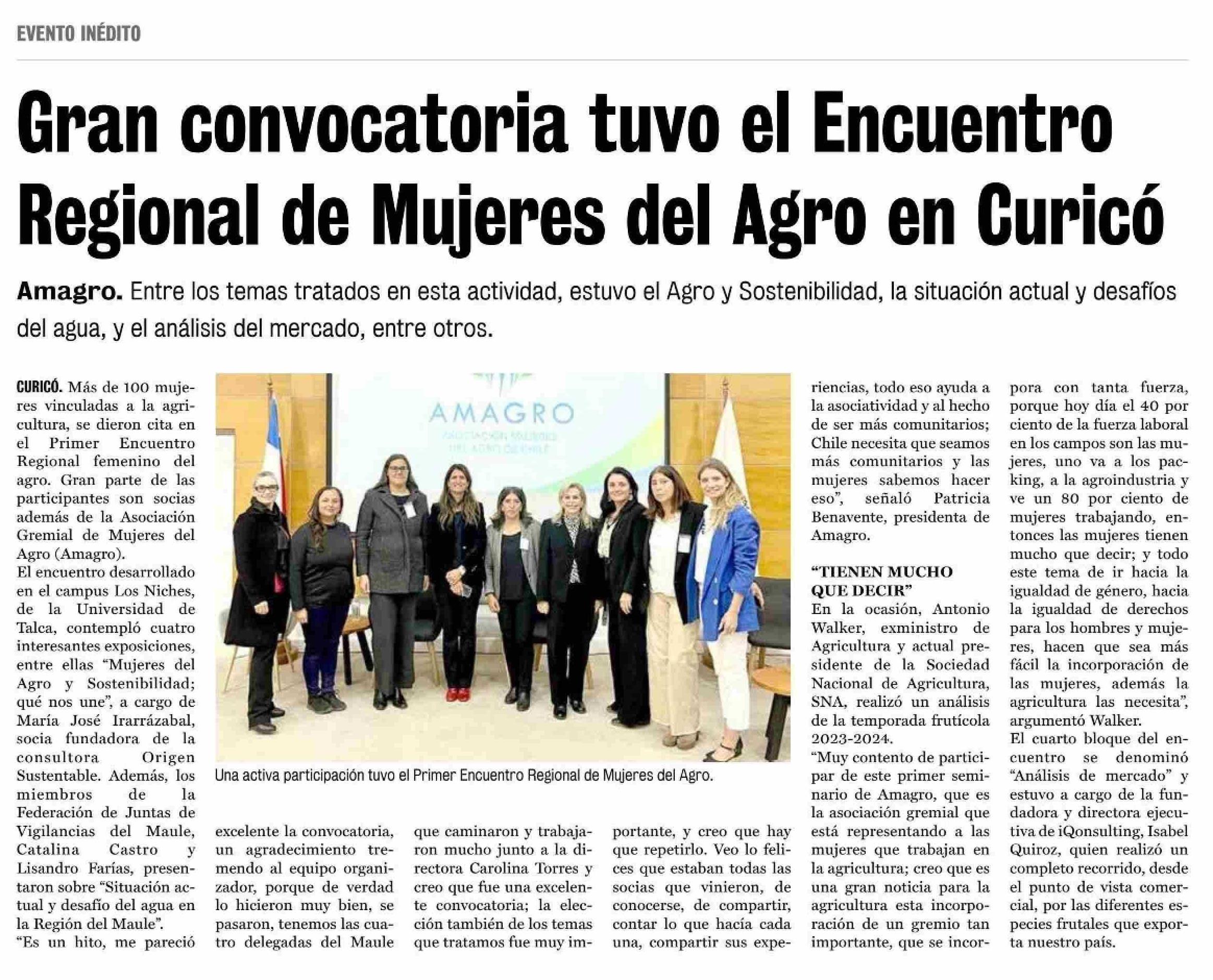 Con gran convocatoria se realizó el Primer Encuentro Regional de Mujeres del Agro. Se menciona la Universidad de Talca.