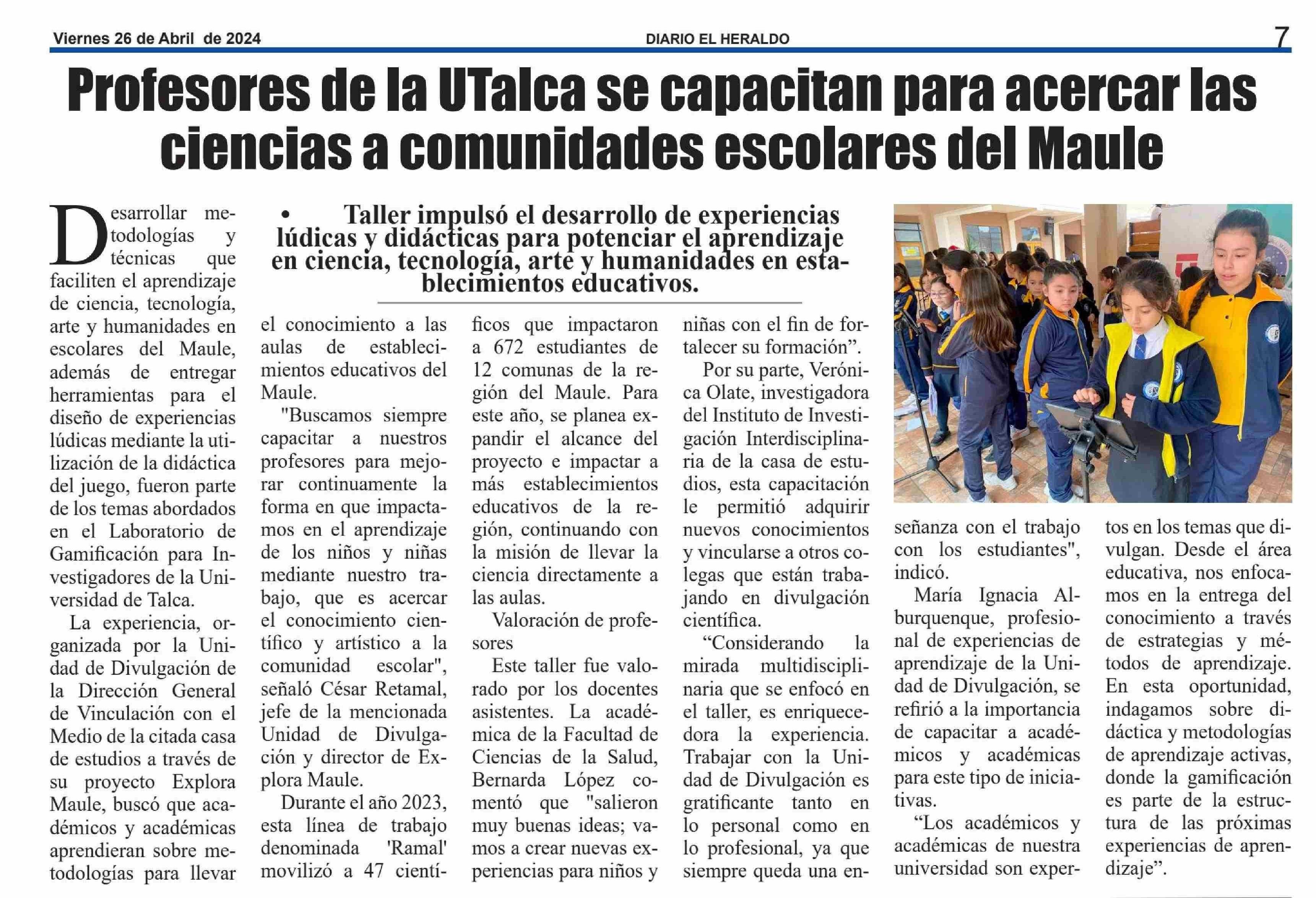 Profesores UTalca se capacitan para acercar las ciencias a las comunidades escolares. Se menciona la Universidad de Talca.