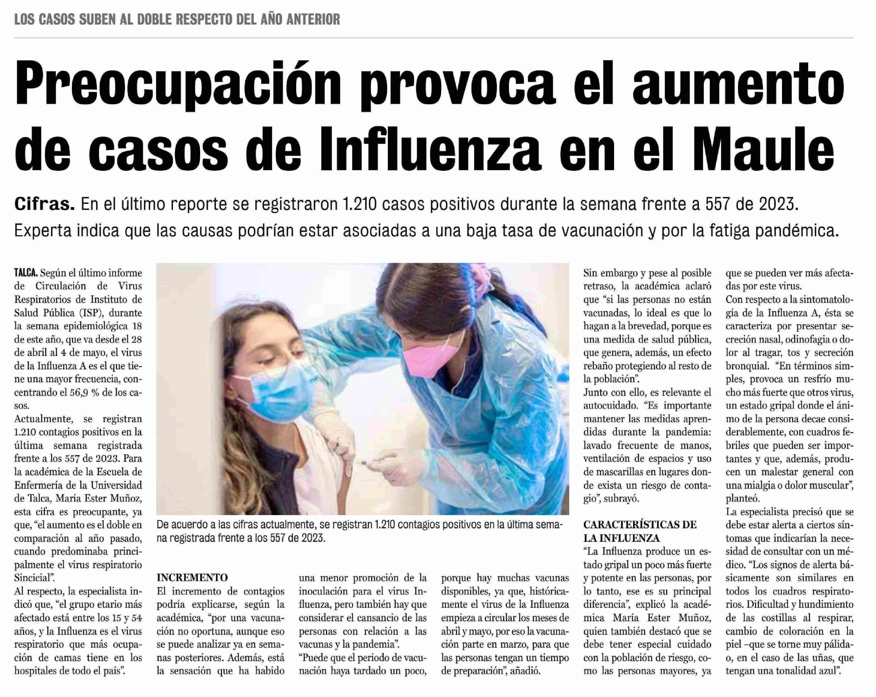 Preocupación provoca el aumento de casos de Influenza en el Maule. Se refiere María Ester Muñoz, académica de la Escuela de Enfermería.
