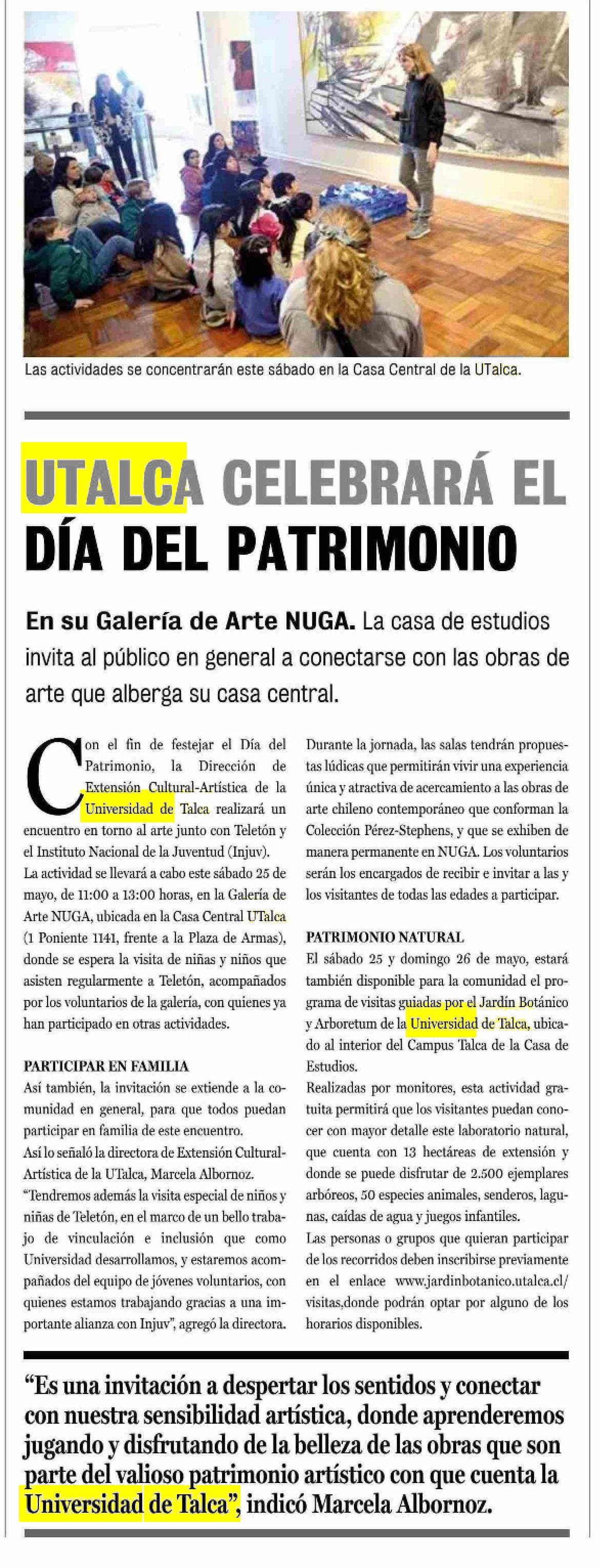 UTalca celebrará el Día del Patrimonio. Se refiere Marcela Albornoz Dachelet, directora de Extensión Cultural-Artística.