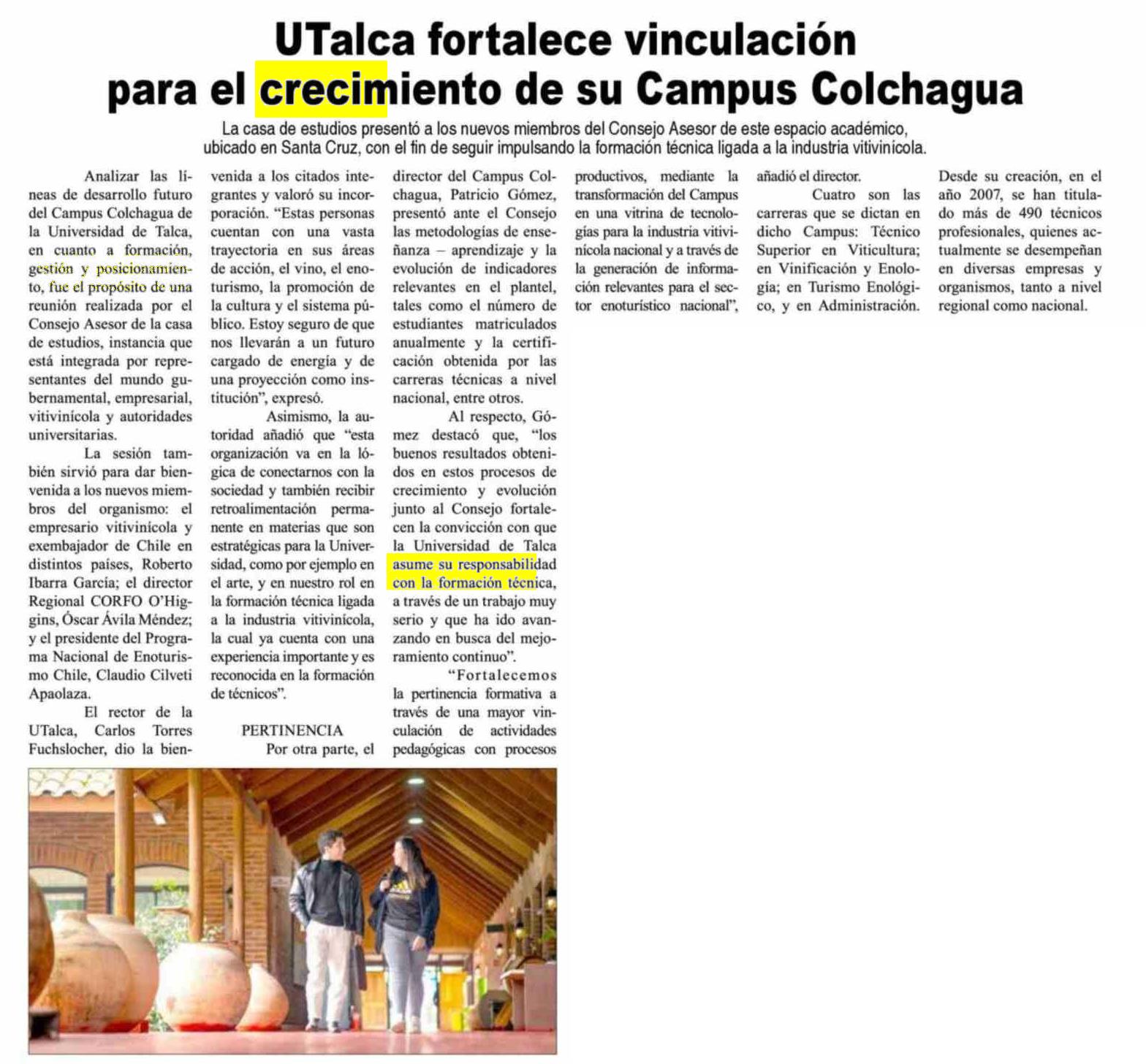 UTalca fortalece vinculación para el crecimiento de su Campus Colchagua. Se refiere Carlos Torres Fuchslocher, rector y Patricio Gómez, director del Campus Colchagua.