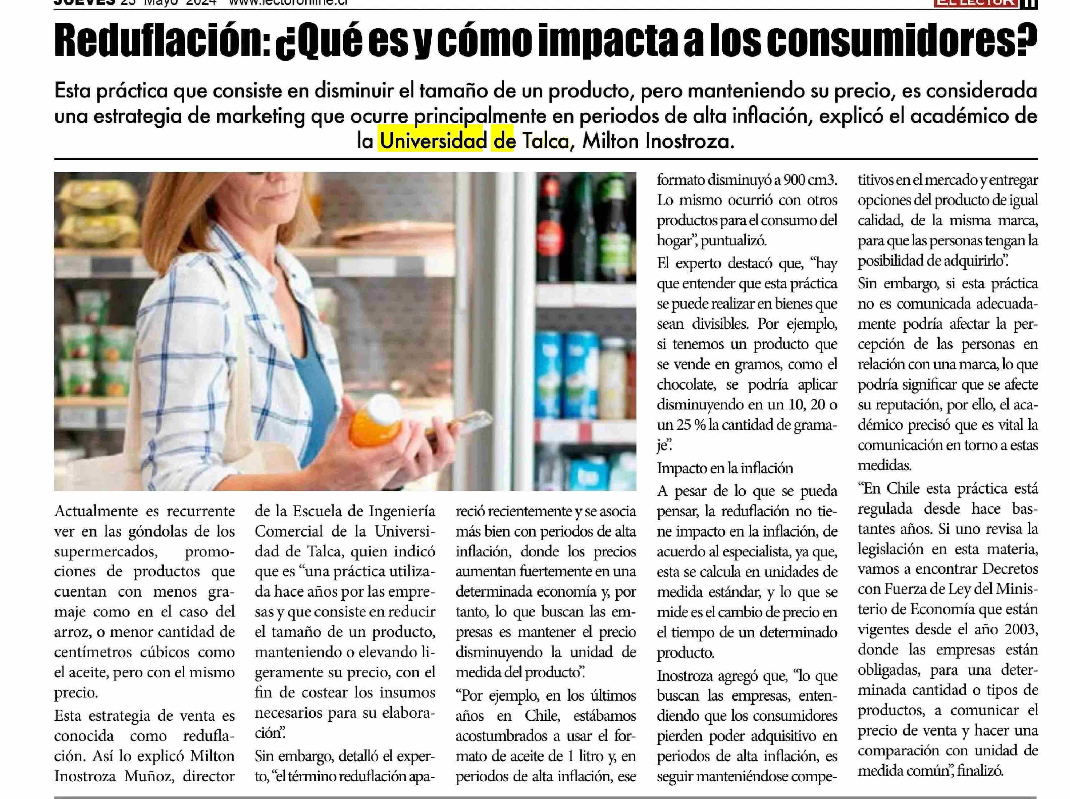 Reduflación: ¿Qué es y cómo impacta a los consumidores? Se refiere Milton Inostroza, académico de la Facultad de Economía y Negocios.