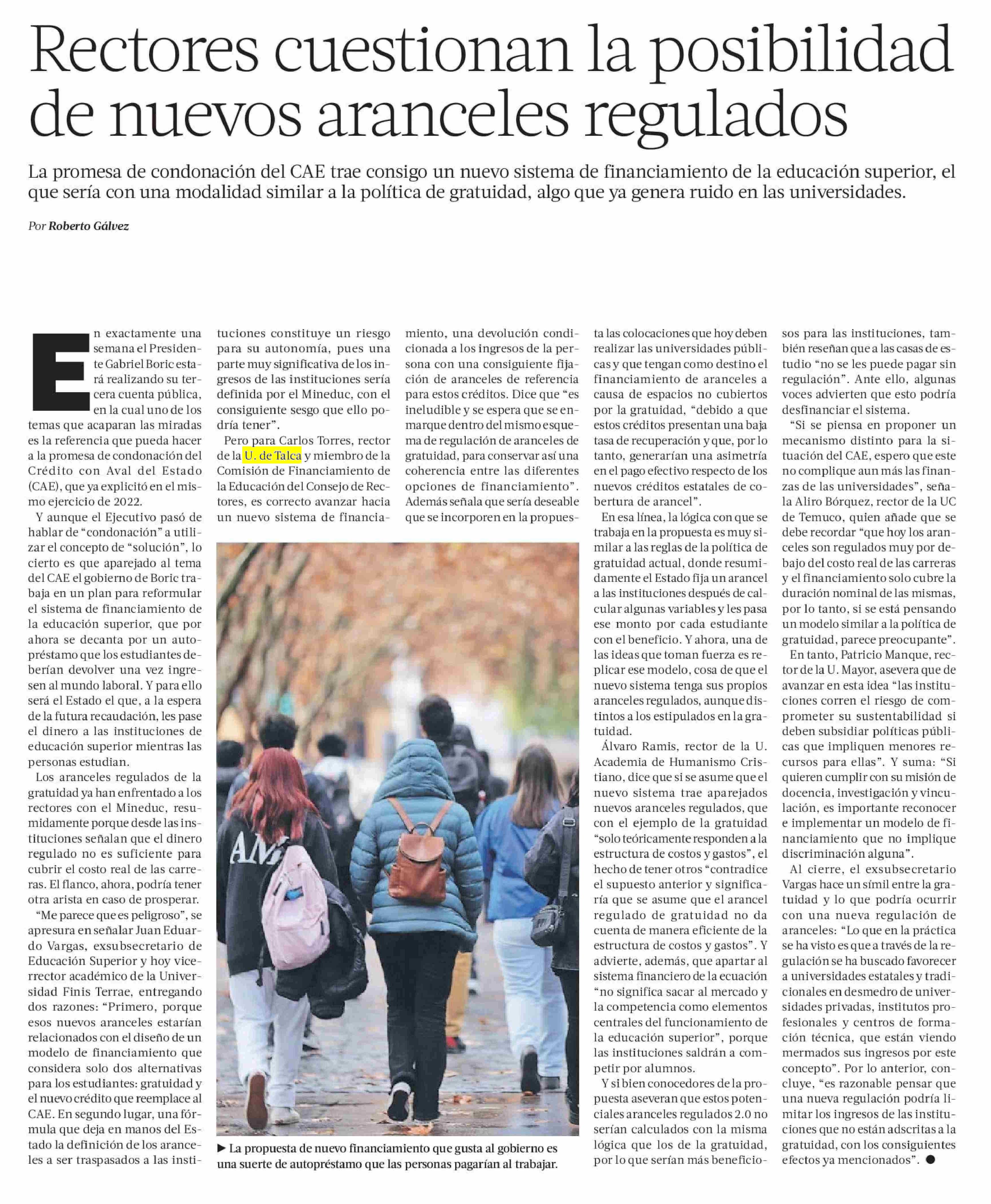 Rectores cuestionan la posibilidad de nuevos aranceles regulados. Se refiere Carlos Torres Fuchslocher, rector.