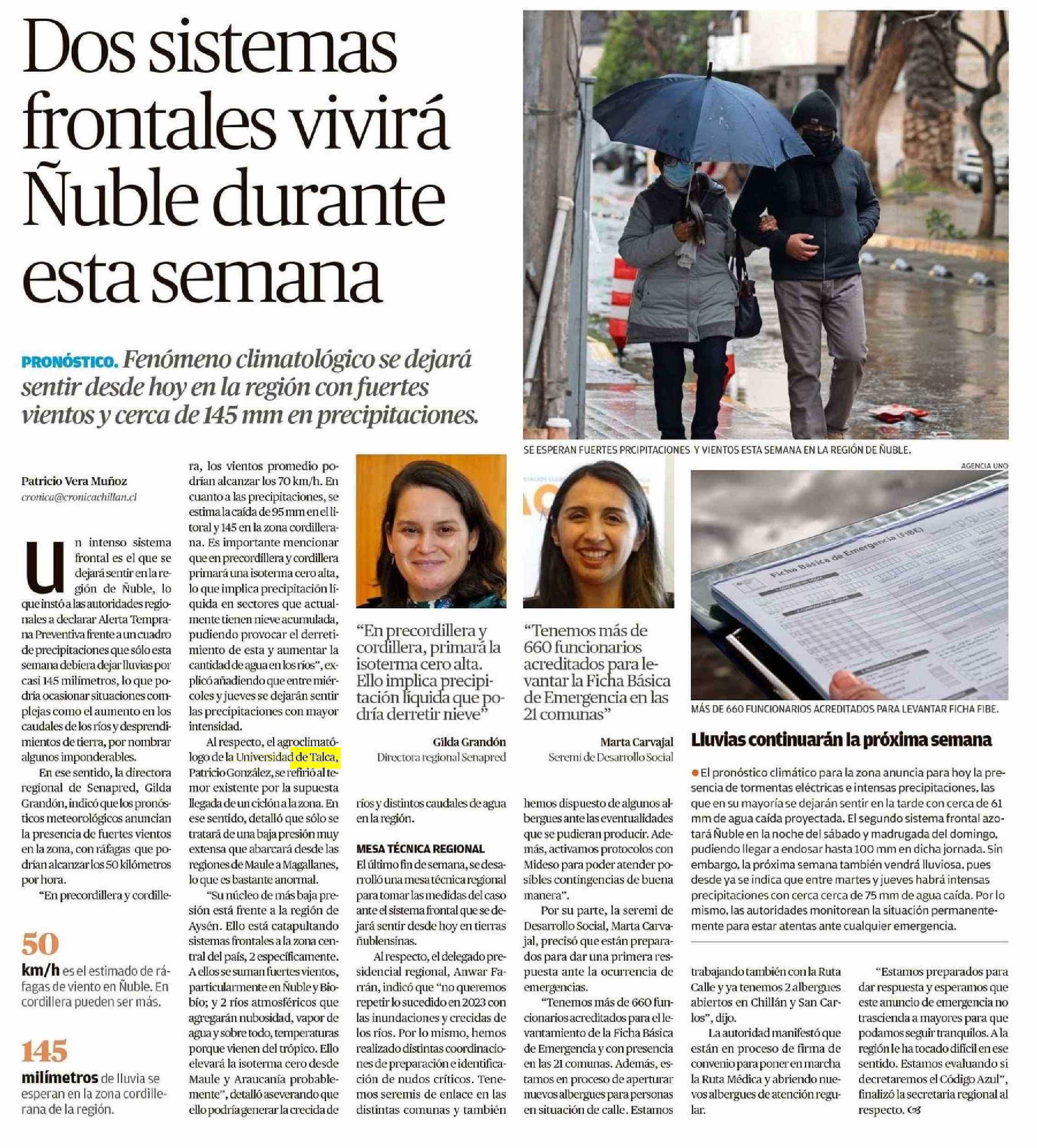 Especialistas destacan que la industria frutícola está preparada para las lluvias. Se refiere Álvaro Sepúlveda, investigador del Centro de Pomáceas