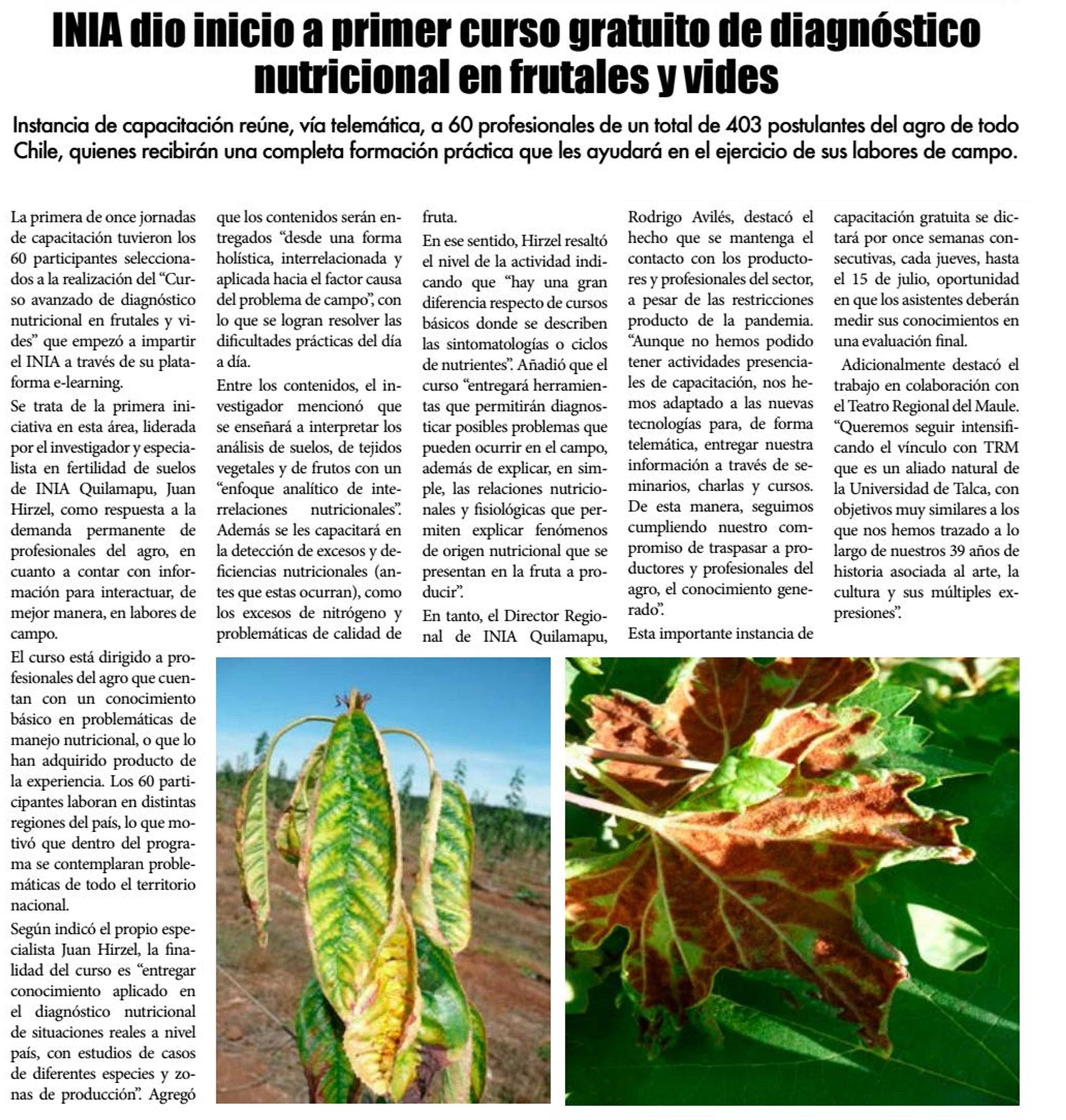 13 de mayo de 2021 COOPERATIVA.CLUTalca y Colmed Maule advierten que preemergencias propiciarán contagios COVID por mala ventilación. CANAL TVNEn Magallanes construirán la primera planta de hidrógeno verde en América Latina. Se refiere Carlos Restrepo, académico de la Facultad de Ingeniería de la UTalca. CANAL 24 HORASEn Magallanes construirán la primera planta de hidrógeno verde en América Latina. Se refiere Carlos Restrepo, académico de la Facultad de Ingeniería de la UTalca. LATERCERA.COMEstudio revela que 18,5% de hogares rurales de La Araucanía y Los Lagos registra preocupante carencia de alimentos durante la pandemia. Se refiere Emilia Giacaman, académica de la Escuela de Nutrición y Dietética de la UTalca. ADPRENSA.CLEnergías sustentables: inauguran planta solar fotovoltaica. Se refiere Pablo Villalobos, vicerrector de Innovación y Transferencia Tecnológica; Javier Muñoz, decano de la Facultad de Ingeniería; y Cristián Mardones, director de la Escuela de Ingeniería Civil Eléctrica. UNIVERSIDADESESTATALES.CLEnergías sustentables: inauguran planta solar fotovoltaica. Se refiere Pablo Villalobos, vicerrector de Innovación y Transferencia Tecnológica; Javier Muñoz, decano de la Facultad de Ingeniería; y Cristián Mardones, director de la Escuela de Ingeniería Civil Eléctrica. RANCAGUATV.CLInauguran planta solar fotovoltaica. Se refiere Pablo Villalobos, vicerrector de Innovación y Transferencia Tecnológica; Javier Muñoz, decano de la Facultad de Ingeniería; y Cristián Mardones, director de la Escuela de Ingeniería Civil Eléctrica. UNIVERSIDADESESTATALES.CLUTalca y Ministerio de Minería firman convenio para apoyar actividad en el Maule. MINERIACHILE.CLUTalca y Ministerio de Minería firman convenio para apoyar actividad en el Maule. RADIORTL.CLEspecialista explicó por qué el COVID-19 sería una enfermedad vascular y no respiratoria. Se refiere Dayana Machado, directora del Programa de Medicina Interna de la UTalca. RANCAGUATV.CLEspecialista explicó por qué el COVID-19 sería una enfermedad vascular y no respiratoria. Se refiere Dayana Machado, directora del Programa de Medicina Interna de la UTalca. G5NOTICIAS.CLEspecialista explicó por qué el COVID-19 sería una enfermedad vascular y no respiratoria. Se refiere Dayana Machado, directora del Programa de Medicina Interna de la UTalca. TVMAULE.CLEntregan resultados de proyecto sobre medición de contaminación del aire a bajo costo en Provincia de Curicó. Se menciona que investigación es realizada por la UTalca. TALCACAPITAL.CLInvestigador UTalca entrega resultados de proyecto sobre medición de contaminación del aire a bajo costo en Provincia de Curicó. ELALFA.CLInvestigador UTalca entrega resultados de proyecto sobre medición. CENTROSURNOTICIAS.CLInvestigador UTalca entrega resultados de proyecto sobre medición de contaminación del aire a bajo costo en Provincia de Curicó. LPEMNOTICIAS.CLEntregan resultados de medición de contaminación del aire en Provincia de Curicó ¿resultaría en el Biobío? Se refiere Ricardo Baettig, investigador de la UTalca. CANAL 24 HORASVía Pública: entrevista a Mauricio Morales, director del Centro de Análisis Político (CAP) de la UTalca. RADIO DUNAEntrevista a Mauricio Morales, director del Centro de Análisis Político (CAP) de la UTalca. RADIO ADNCrece la preocupación por el resguardo de las urnas para las elecciones. Se refiere Mario Herrera, académico del Centro de Análisis Político (CAP) de la UTalca. RADIO ADNPolémica ley establece 2 días irrenunciables 15 y 16 de mayo. Se refiere Mauricio Morales, director del Centro de Análisis Político (CAP) de la UTalca. EL LECTORINIA dio inicio a primer curso gratuito de diagnóstico nutricional en frutales y vides. Se menciona a la UTalca.